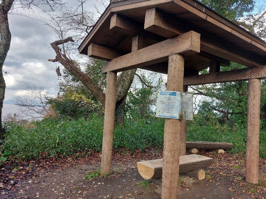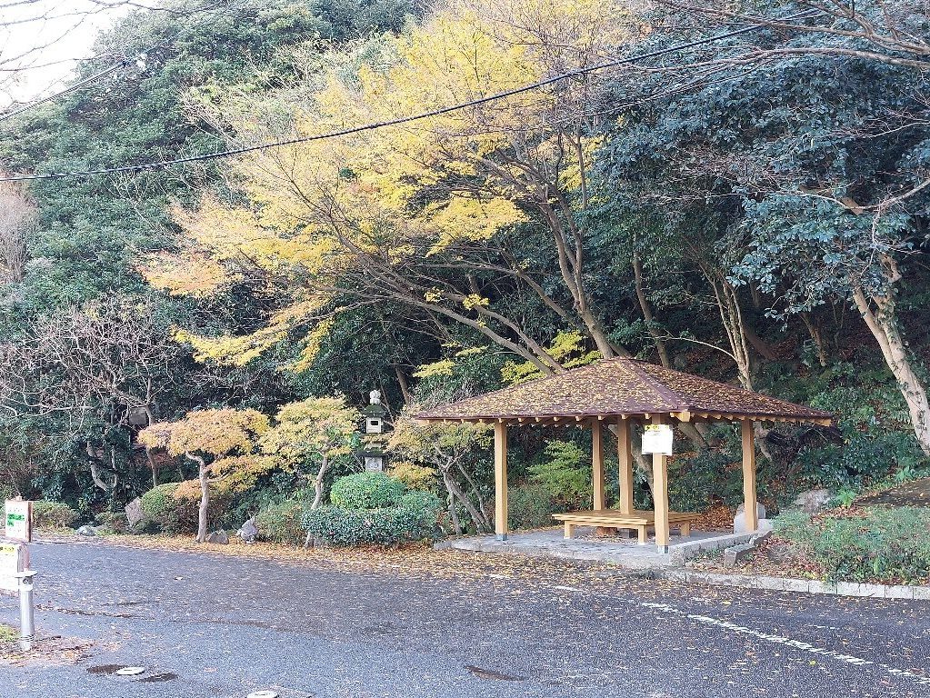 お城に隣接する湊山公園の駐車場出たとこには感じのいい東屋が