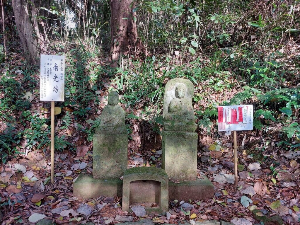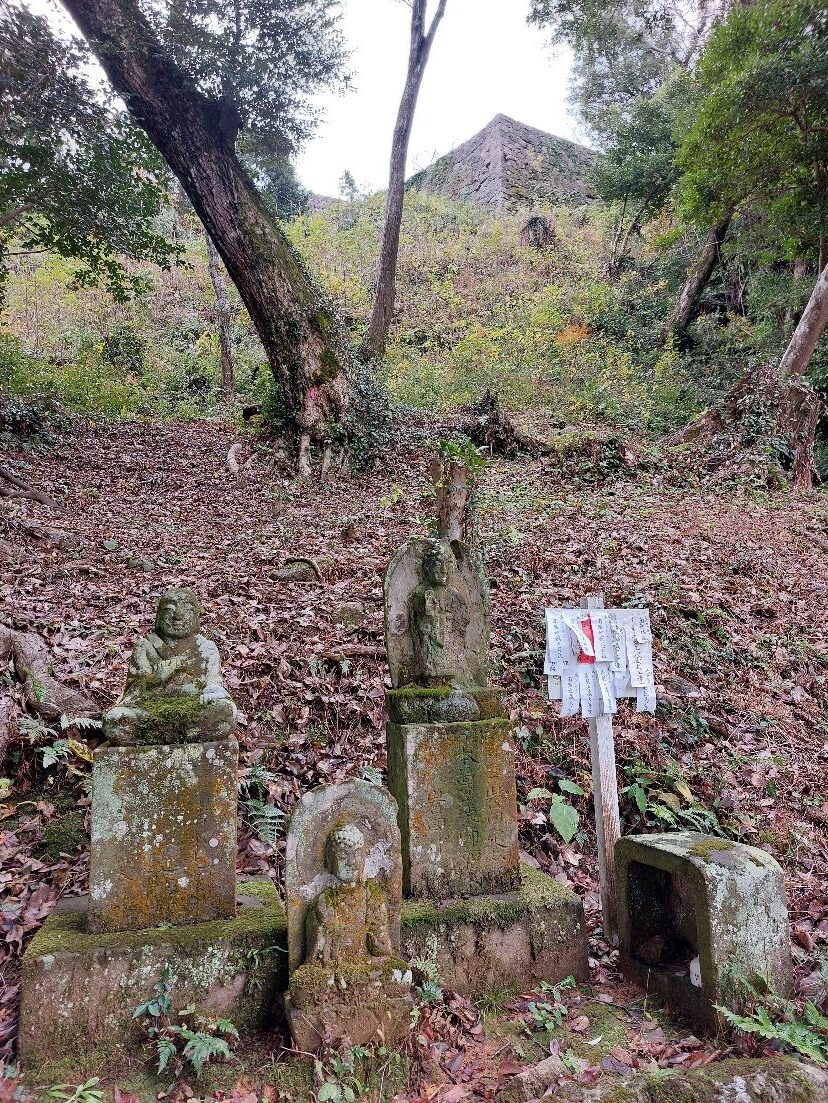 その途中にお地蔵さんがありました。隣にはお札があります。