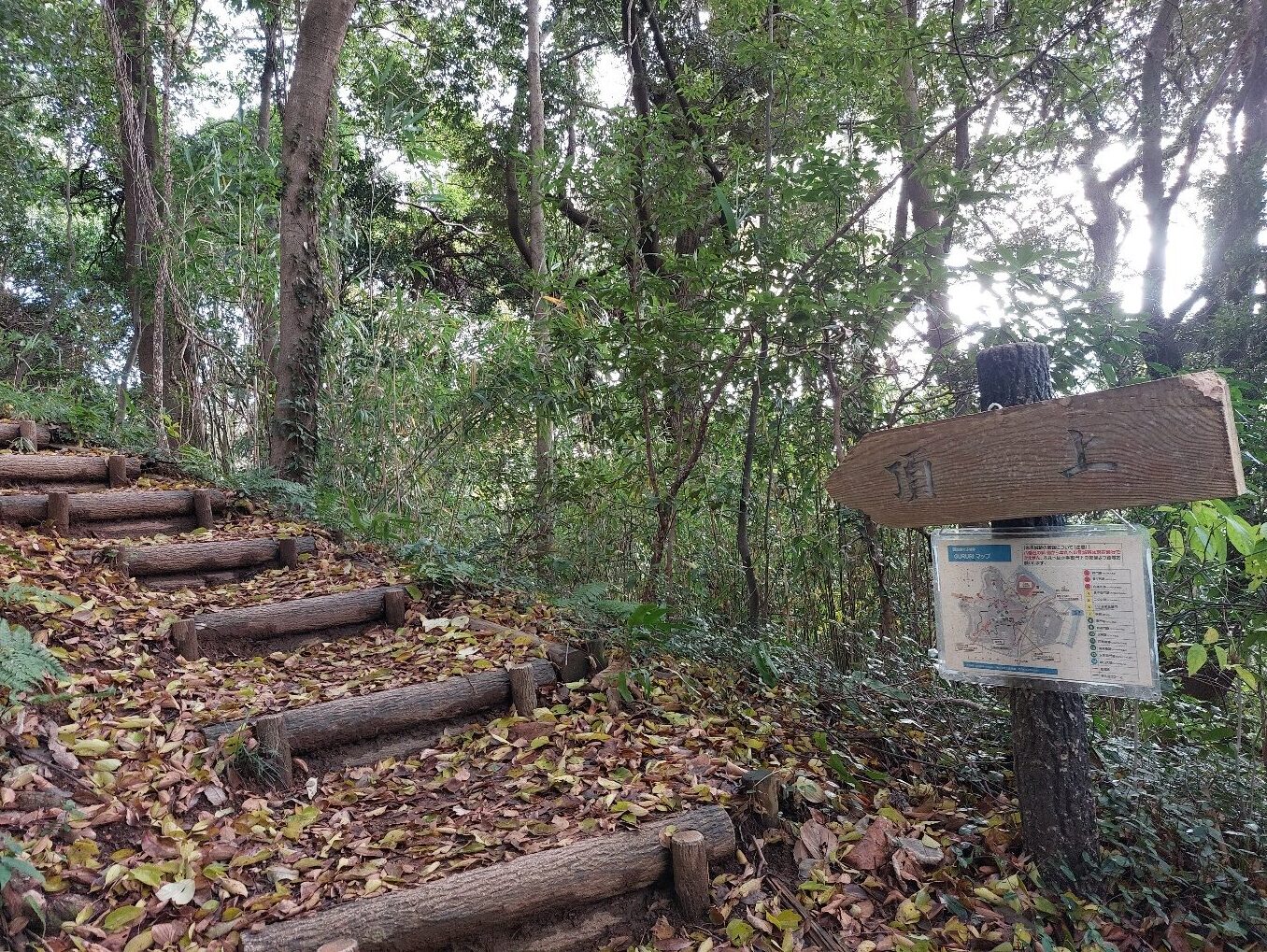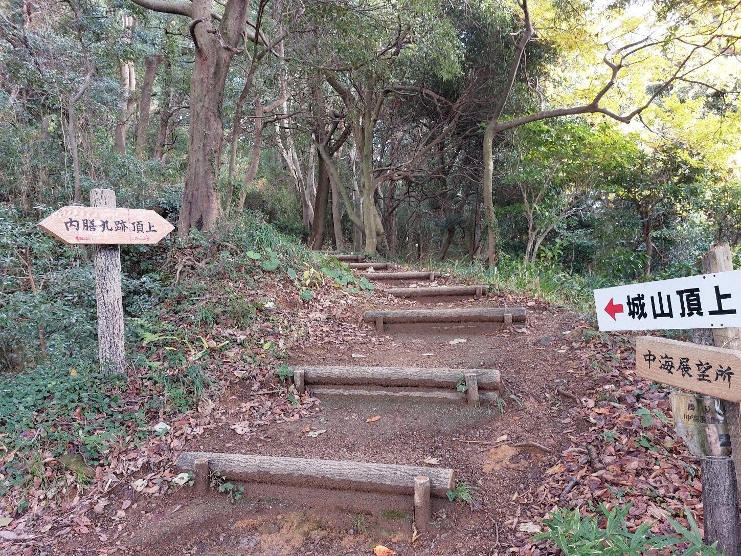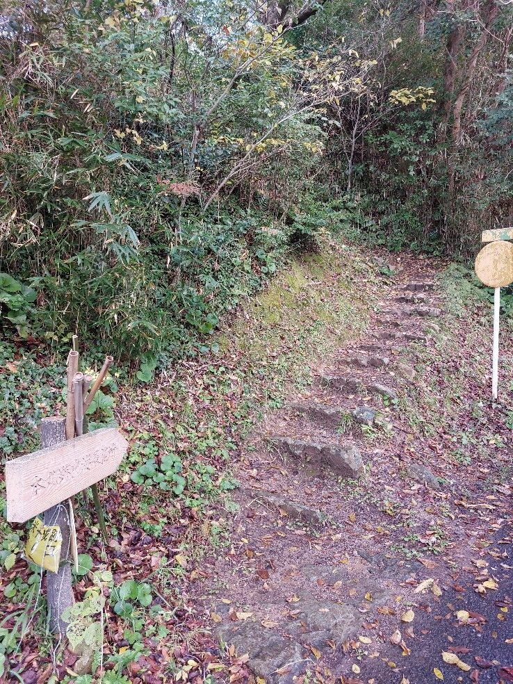 ここからすぐの登城口は工事中だったので、右手のちょっと坂になった道路を進んで・・・