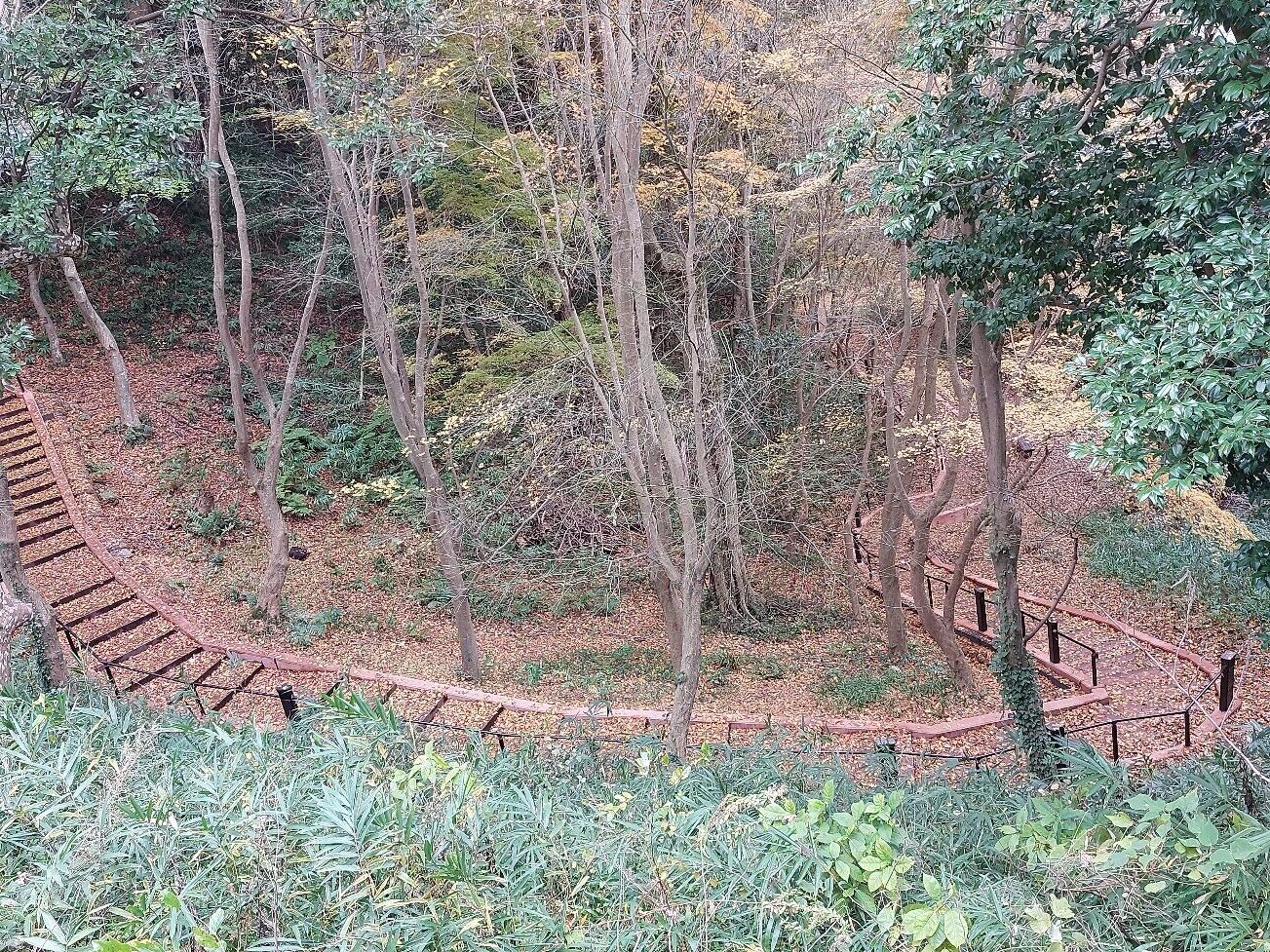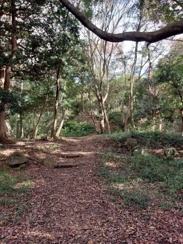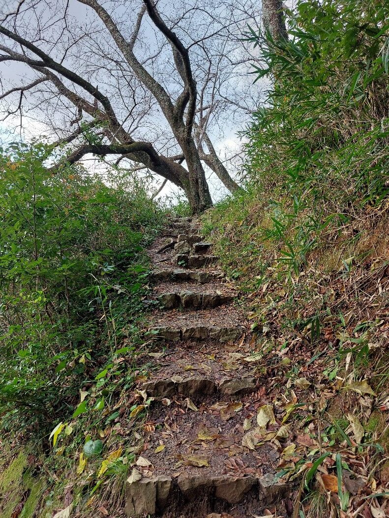 このあたりの木はみんな桜で樹齢100年くらいあるんだよとか大正時代には、頂上にお茶屋さんもあってそこでみんな団子を食べたものだとか、1960年に山を削って国道9号線ができたんだとか。 こういうお散歩市民が進んでガイドしてくる文化いいなーー