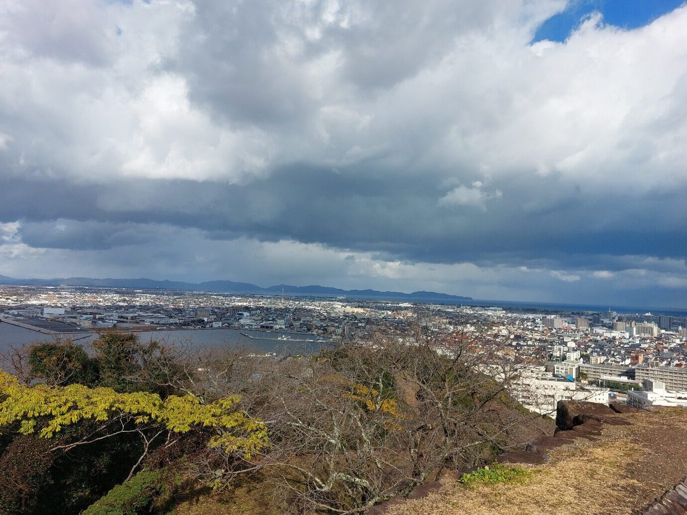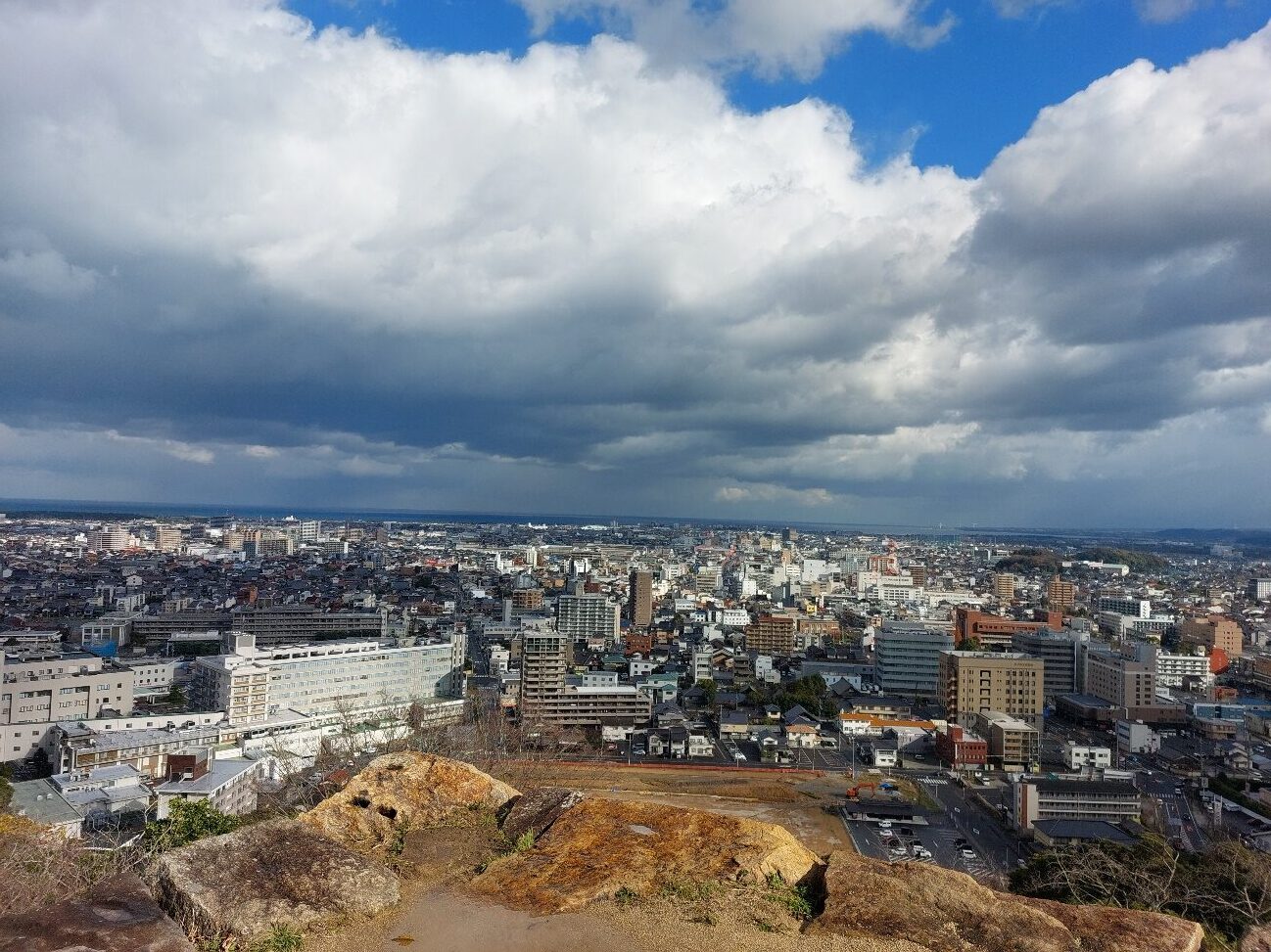 頂上からの景色!米子の街が一望!!!(手前は石垣の角)
